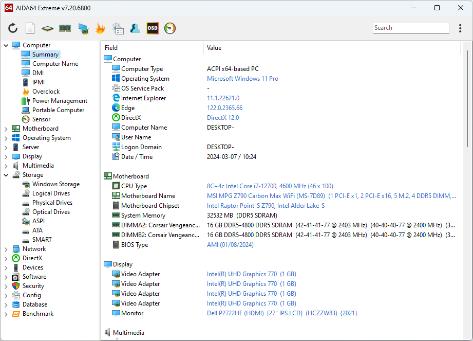 AIDA64 Extreme 擁有同類產品中無可匹敵的硬件檢測引擎,提供詳盡的已安裝軟件資訊,並具備診斷與超頻支援功能。它能夠實時監控傳感器,獲取準確的電壓、温度與風扇轉速讀數;其診斷功能有助於及時發現並預防硬件問題。它還提供多款基準測試程式,用以衡量單個硬件組件或整個系統的性能。兼容所有 64 位 Windows 版本,包括 Windows 11 與 Windows Server 2022。